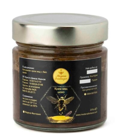 5,50 €205 g.Chocolate cream honey with cocoa is a tempting combination of fine, creamy, natural honey and high-quality, organic cocoa powder. With a velvety texture and rich chocolate flavour, it offers sweet indulgence naturally - without unnecessary additives.