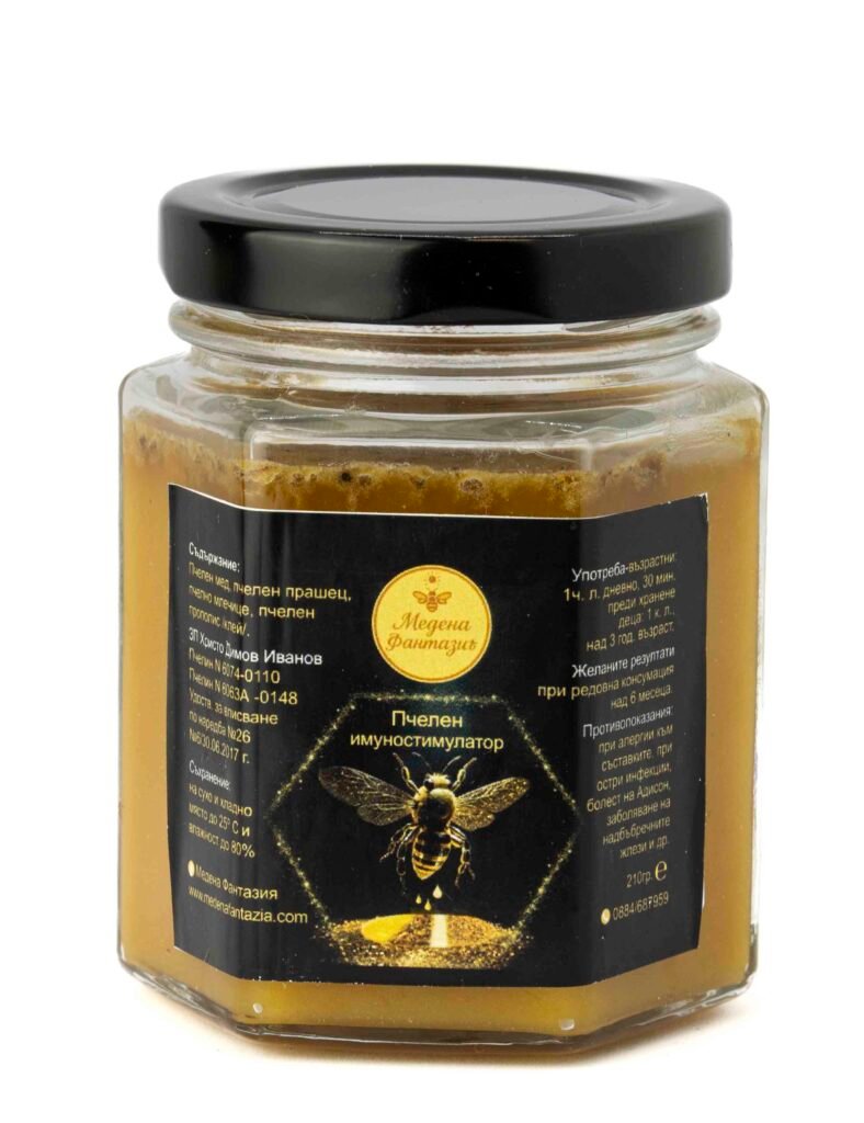 Пчелният имуностимулатор е натурална комбинация от ценни пчелни продукти, създадена да подпомага естествените защитни сили на организма. Формулата обединява силата на меда, прополиса, пчелния прашец и пчелното млечице – съкровища от кошера, използвани от векове в природната грижа за здравето.